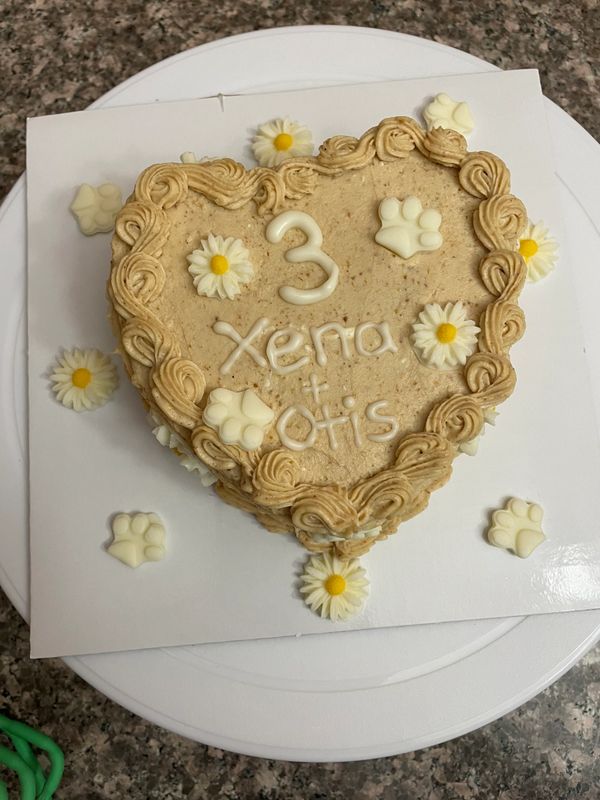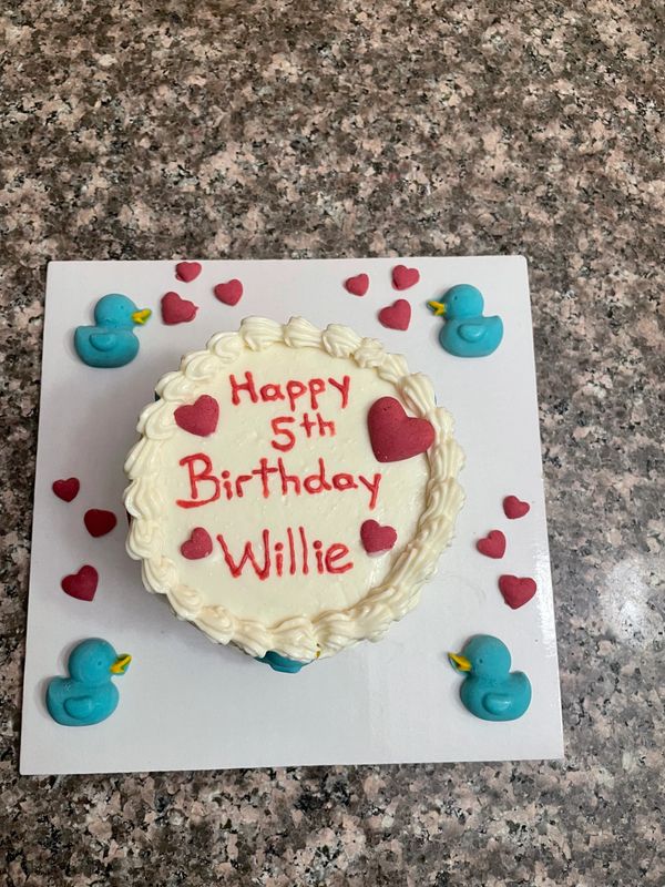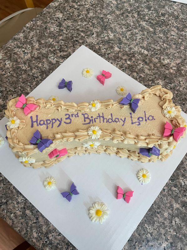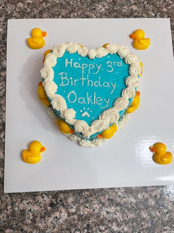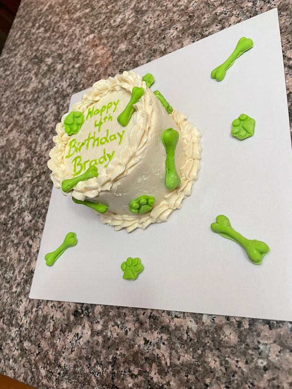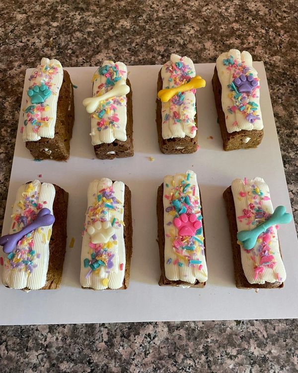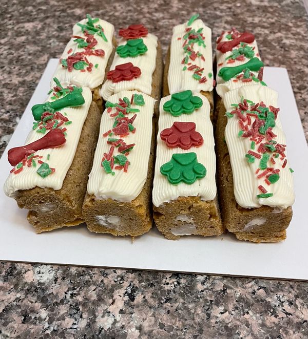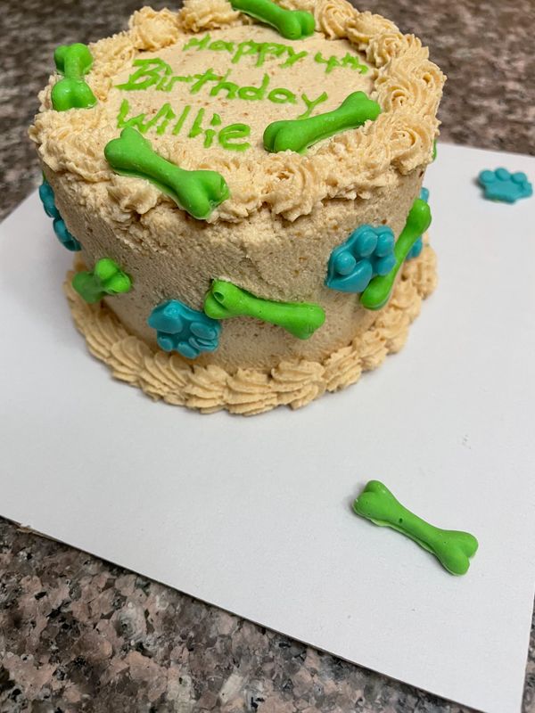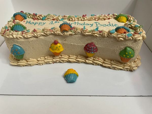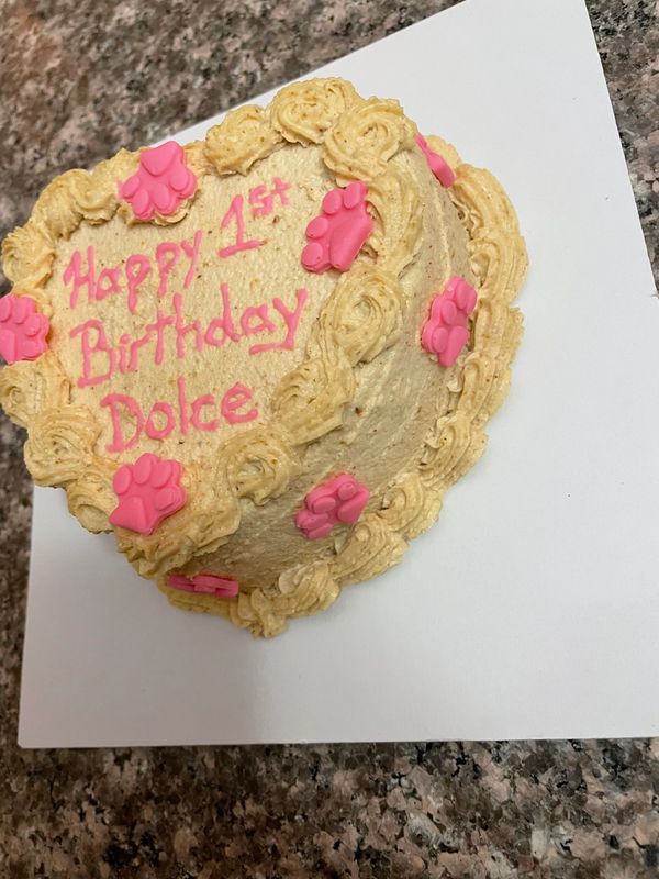 Cakes, Pastries & Ice Cream can not be shipped. They can be picked up or delivered. Please fill out the form completely when you decide which yummy cake, pastry, or Ice Cream you would like for your pup(s)!