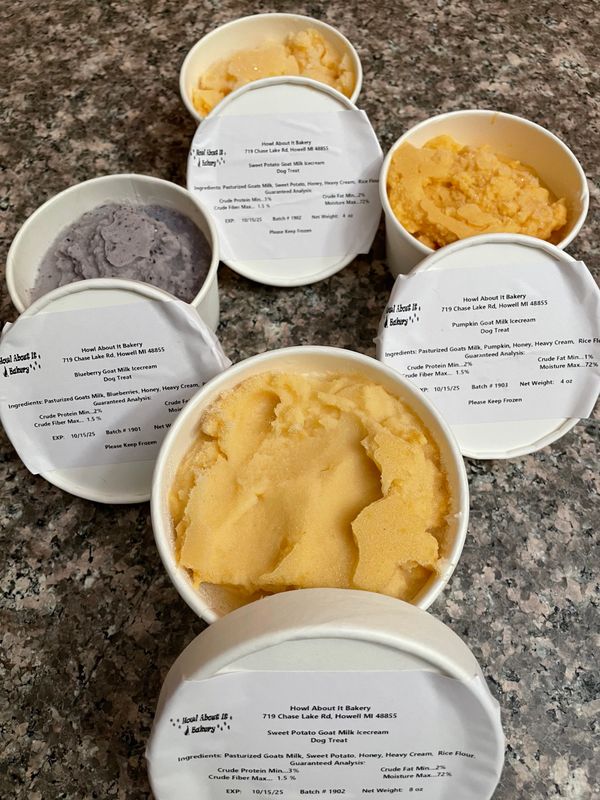 We have Blueberry, Sweet Potato, & Pumpkin! They come in 4 oz or 8 oz containers. These are supper fun to add to the birthday / celebration. This product is made with milk from our goats on our Homestead so it may not be available through the winter and early spring due to the goats having their babies (we do not milk until the babies are weaned unless it is necessary). If you are picking up and have a far drive we do recommend bringing a cooler and ice packs. If you need a large order ove