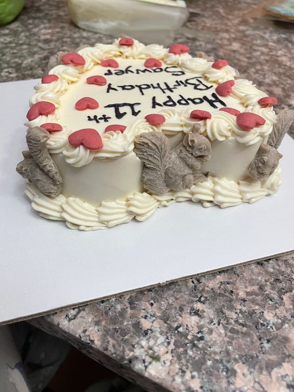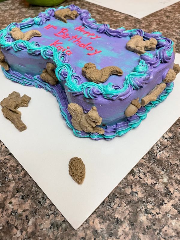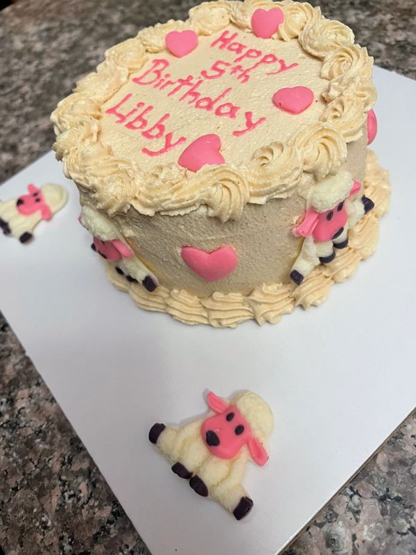 Small Heart Cake, Small Dog Cake, Squirrel Cake, 4 Inch Round Cake, Bear Cake and Pig Cake.